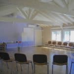 In the same building you find the dominating luminous, East-West oriented, 80 m2, with a wooden floor, decorated with soothing soft-colors. The Seminar Hall is equipped with multimedia facilities, projector etc. and all the necessary gear for special seminars, such as yoga mats, etc.